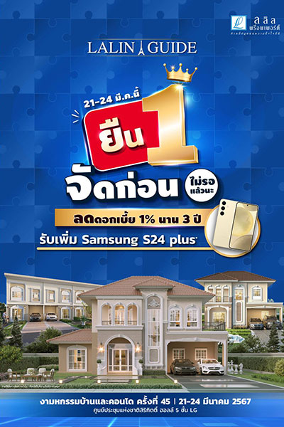 ลลิล พร็อพเพอร์ตี้ รุกตลาดบ้านแนวราบต่อเนื่องตลอดไตรมาสแรกปี 67 หลังประกาศแผนเน้นพัฒนาโครงการใหม่แบบกระจายทั่วทุกพื้นที่ในเขต กทม. และปริมณฑล เพื่อเพิ่มทางเลือกให้แก่ผู้บริโภคที่อยากได้บ้านในทำเลที่ชอบ พร้อมปล่อยหมัดเด็ดหนุนกำลังซื้อให้มีบ้านได้ง่ายยิ่งขึ้นด้วยการประกาศลดดอกเบี้ย 1% นาน 3 ปีทุกโครงการ ทุกทำเล พร้อมลุ้นรับโทรศัพท์มือถือ Samsung Galaxy S24 Plus !! ในงานมหกรรมบ้านและคอนโดครั้งที่ 45 ที่จัดขึ้นระหว่างวันที่ 21-24 มี.ค. นี้เท่านั้น ลงทะเบียนรับสิทธิ์ได้ที่ https://www.lalinproperty.com/promotion/allproject-corporate/