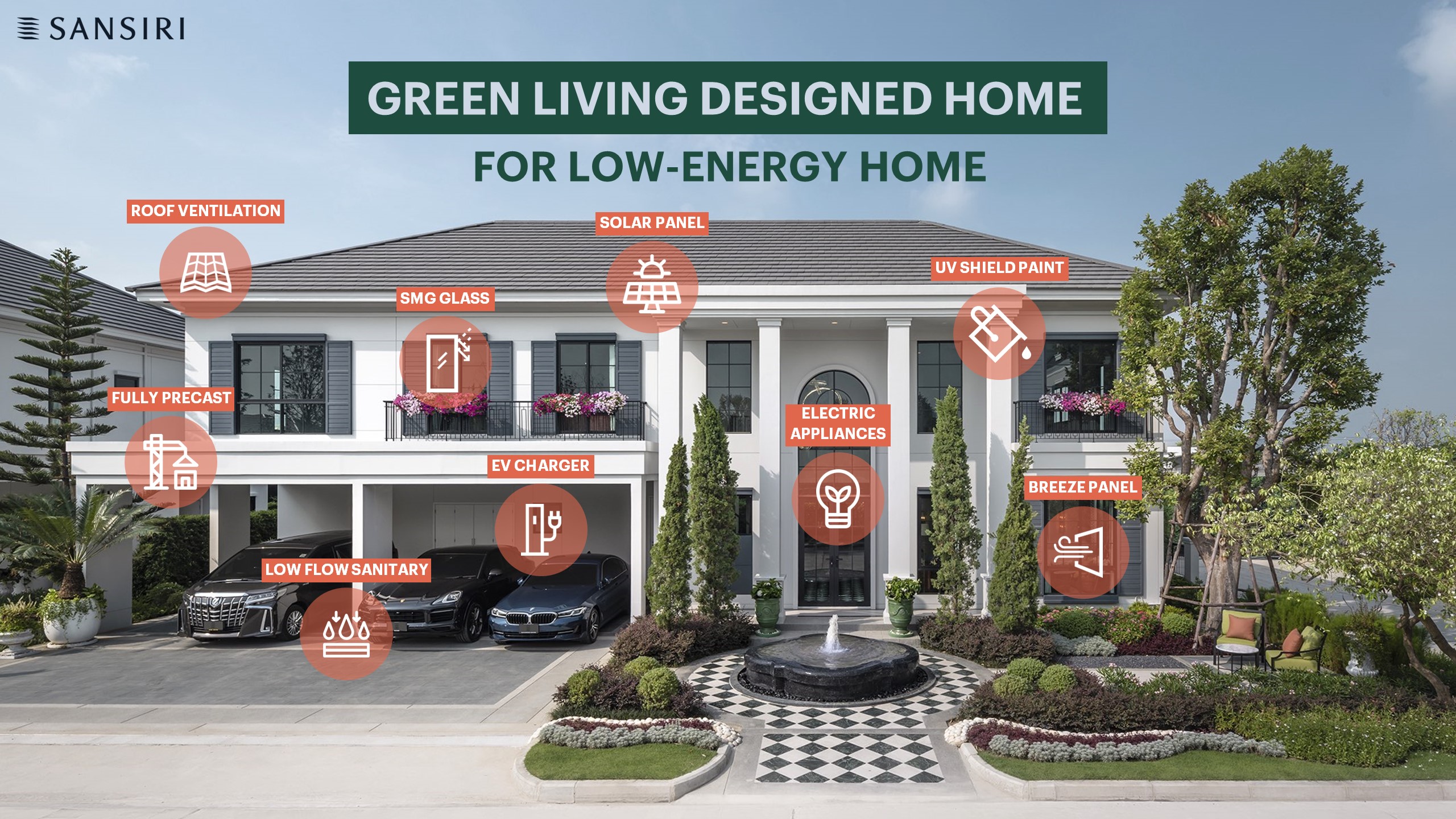 อีกหนึ่งตัวอย่างที่แสนสิริทำคือแนวคิดนวัตกรรมบ้านสีเขียว (Green Living Designed Home) ซึ่งเป็นหนึ่งใน Key Driver ที่ยกระดับการพัฒนาโครงการที่ตอบสนองต่อการเปลี่ยนแปลงด้านต่างๆ ของโลก ทั้งการเปลี่ยนแปลงด้านภูมิอากาศ รวมถึงเทรนด์การอยู่อาศัยที่ผู้บริโภคให้ความสนใจในการลดผลกระทบและสินค้าที่เป็นมิตรต่อสิ่งแวดล้อมมากขึ้น