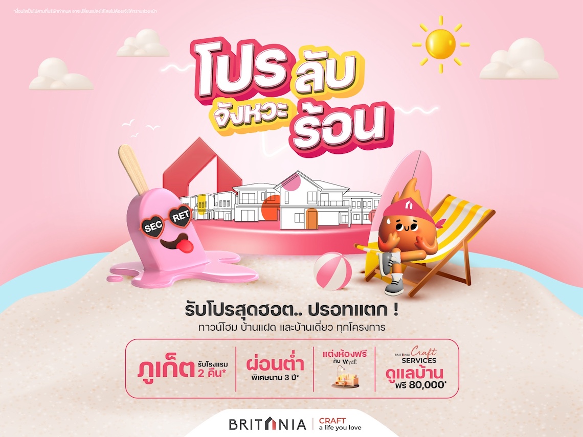 บริทาเนีย ผู้นำในการพัฒนาอสังหาริมทรัพย์ที่มุ่งมั่นพัฒนาที่อยู่อาศัยเพื่อสังคมที่ดีอย่างยั่งยืนฮอตสู้อากาศที่ร้อนปรอทแตกช่วงเมษายนนี้ จัดแคมเปญฉ่ำท้าร้อน “โปรลับ จังหวะร้อน” คัดบ้านยูนิตลับ จัดโปรพิเศษไม่ว่าจะเป็นทาวน์โฮม บ้านแฝด และบ้านเดี่ยวแบรนด์ เบลกราเวีย, แกรนด์ บริทาเนีย, บริทาเนีย และไบรตัน ทำเลกรุงเทพฯ และปริมณฑล รวม 37 โครงการ ราคาเริ่ม 2.29 - 40 ล้านบาท