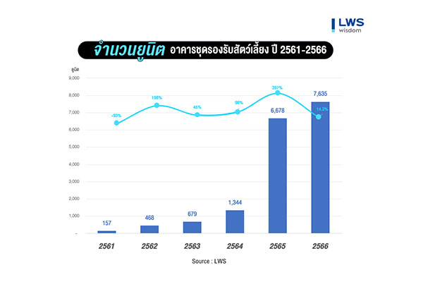 นายประพันธ์ศักดิ์ รักษ์ไชยวรรณ กรรมการผู้จัดการบริษัท แอล. ดับเบิลยู. เอส. วิสดอมแอนด์โซลูชั่นส์ จำกัด บริษัทวิจัยและพัฒนาอสังหาริมทรัพย์ในเครือ บริษัท แอล. พี. เอ็น. ดีเวลลอปเมนท์ จำกัด(มหาชน) เปิดเผยผลวิจัยของฝ่ายวิจัยและสำรวจทำเลที่เหมาะสมในการพัฒนาอาคารชุดเพื่อสัตว์เลี้ยงในพื้นที่กรุงเทพฯ และปริมณฑล ว่า จากผลการสำรวจของ แอล. ดับเบิลยู. เอส ในช่วงสิ้นปี 2566 พบว่า ณ สิ้นปี 2566 มีจำนวนอาคารชุดประเภทที่สามารถเลี้ยงสัตว์ได้ในพื้นที่กรุงเทพฯ-ปริมณฑล จำนวน 23,031 หน่วย เพิ่มขึ้น 4,600.20 % จาก 490 หน่วย เมื่อเทียบกับปี 2554 หรือเพิ่มขึ้นเฉลี่ย 353.86% ต่อปี สะท้อนให้เห็นความต้องการที่อยู่อาศัยในกลุ่มนี้ที่มีแนวโน้มเพิ่มขึ้นอย่างต่อเนื่อง จนทำให้ผู้ประกอบการอสังหาริมทรัพย์ต้องหันมาพัฒนาโครงการอาคารชุดที่สามารถเลี้ยงสัตว์ได้ เพื่อตอบโจทย์กับความต้องการของผู้ซื้อในกลุ่มที่มีสัตว์เลี้ยงเปรียบเสมือนสมาชิกในครอบครัวที่เรียกว่า Pet Parent หรือ Pet Humanization ซึ่งเป็นผลมาจากการเปลี่ยนแปลงพฤติกรรมของประชากรที่เป็นโสด หรือแต่งงานแล้วไม่อยากมีลูก และเลี้ยงสัตว์เลี้ยงเป็นเหมือนสมาชิกในครอบครัวมากกว่าที่จะเลี้ยงไว้เฝ้าบ้าน เหมือนในอดีต