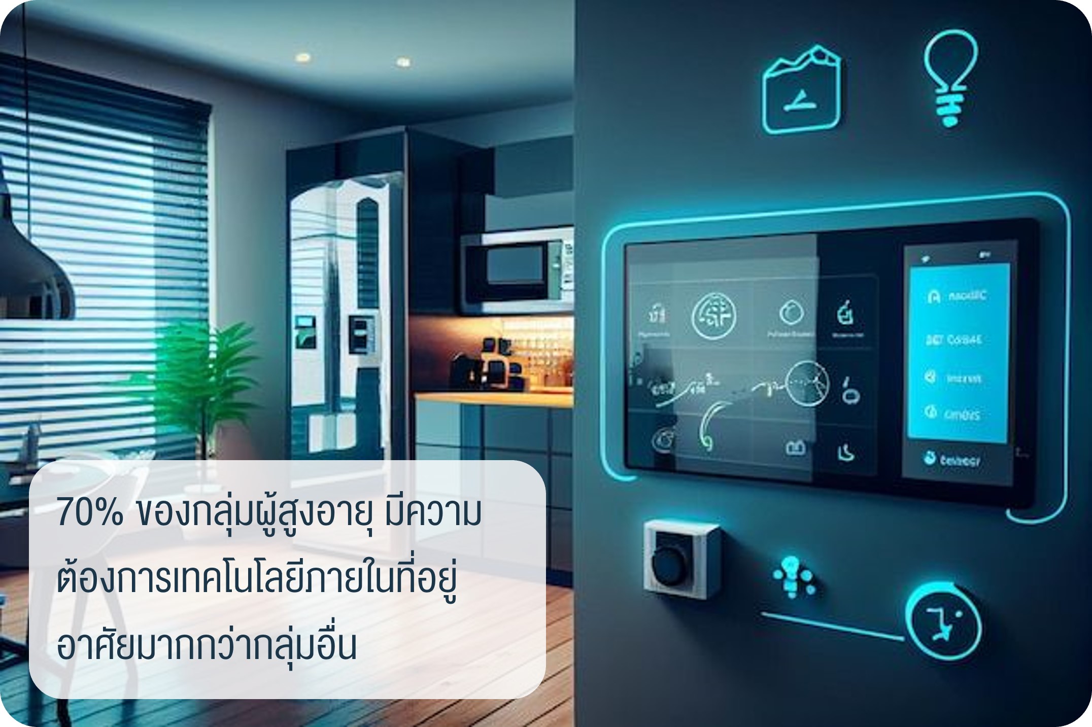 ซึ่งสอดคล้องกับผลสำรวจของ LWS โดยพบสัดส่วนความต้องการเทคโนโลยีภายในที่อยู่อาศัยของกลุ่มผู้สูงอายุมากถึง 70% ในขณะที่กลุ่มอื่นๆ เฉลี่ย 60% ซึ่งเป็นข้อบ่งชี้ที่สำคัญสำหรับพฤติกรรมที่เปลี่ยนไป แต่รายละเอียดการใช้งานต้องกระชับ เข้าใจง่ายไม่ซับซ้อน ซึ่งปัจจุบันผู้ประกอบการหลายธุรกิจเริ่มปรับตัว อย่างธุรกิจพัฒนาอสังหาฯ ที่ใส่ใจตั้งแต่การออกแบบด้วย Universal Design มีเทคโนโลยี IoT ภายในที่อยู่อาศัย รวมถึงงานบริการ เช่น รถรับ-ส่งโรงพยาบาลใกล้เคียง, ดูแลผู้สูงอายุ เป็นต้น เพื่อตอบโจทย์ความต้องการ