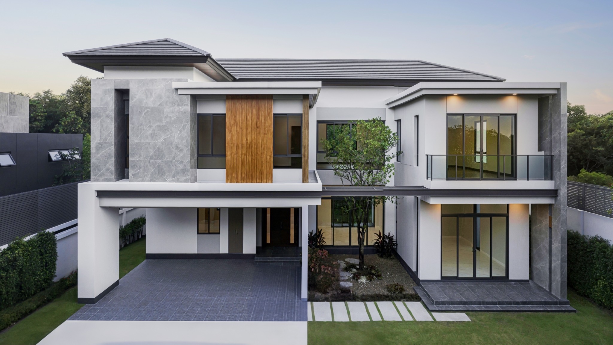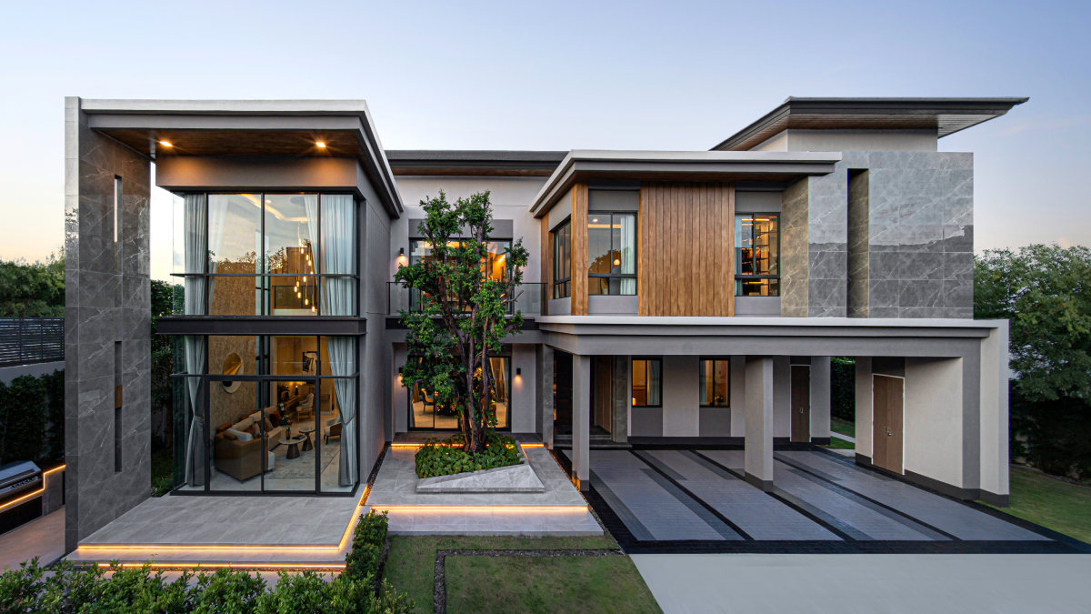 บ้านออกแบบในสไตล์โมเดิร์นลักซ์ชัวรี่ ที่โดดเด่นมีเอกลักษณ์ รายล้อมด้วยบรรยากาศสีเขียว ร่มรื่น ให้มุมมองที่ใกล้ชิดธรรมชาติและความเป็นส่วนตัวทุกหลัง