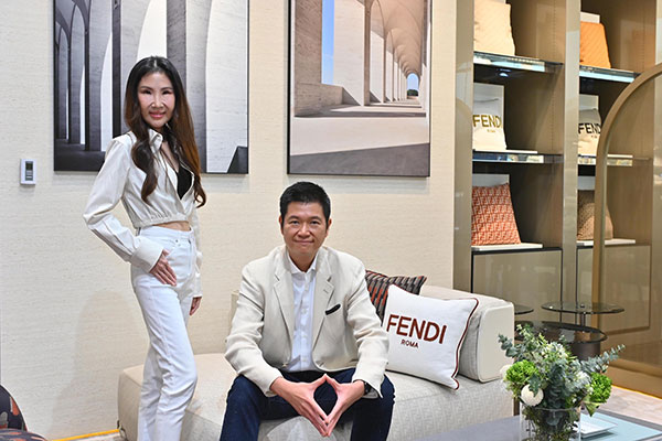 เมื่อนำมาจับคู่กับเฟอร์นิเจอร์แบรนด์ดังชั้นนำจากอิตาลี อย่าง Fendi Casa ที่นำเข้าโดย คุณอัครรัฐ วรรณรัตน์ กรรมการผู้จัดการใหญ่ MOTIF ซึ่งเป็นผู้นำเข้าแต่เพียงผู้เดียวในประเทศไทย ยิ่งตอกย้ำถึงความหรูหราเหนือระดับอย่างมีเอกลักษณ์เฉพาะตัว! สะท้อนกลิ่นอายความเป็นแฟชั่นเหนือกาลเวลา ไม่ว่าจะเป็นส่วนโค้งของ Fendi HQ Palazzo Della Civiltà Italiana, โลโก้ FF, Karligraphy และลาย Pequin ทั้งการตัดเย็บที่ใช้การประณีตขั้นสูง การใช้โทนสีที่ดูธรรมชาติเงียบสงบ จับคู่กับสีสันจัดจ้านแสดงถึงจิตวิญญาณของความขี้เล่น บ่งบอก DNA ของ Fendi ได้อย่างชัดเจน