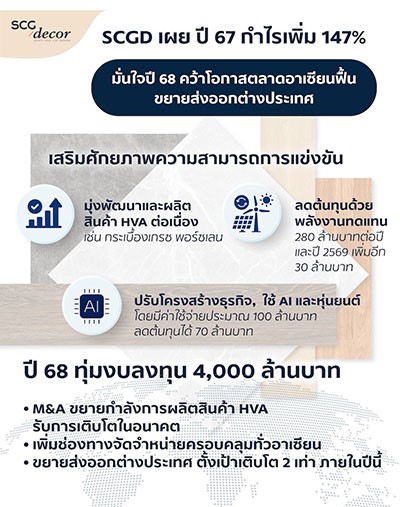 SCGD เผยผลประกอบการปี 2567 กำไร 810 ล้านบาท เพิ่มขึ้น 147%