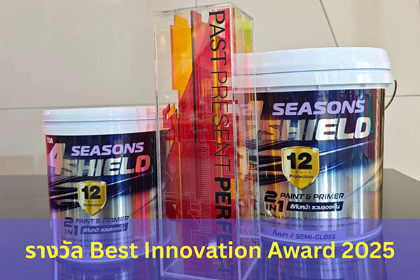 ล่าสุด 4SEASONS SHIELD 2in1 ยังได้รับรางวัล "Best Innovation Award 2025" จากงานสถาปนิก'68 ซึ่งเป็นเวทีระดับประเทศที่มอบรางวัลให้กับนวัตกรรมรักษ์โลกที่โดดเด่นในวงการก่อสร้างและออกแบบ โดยที่นวัตกรรมสีทับหน้ารวมรองพื้นนี้ ถือเป็นการเปลี่ยนแปลงวงการอุตสาหกรรมสีอย่างสิ้นเชิง เพราะช่วยประหยัดทั้งเวลาและต้นทุนค่าแรงงานถึง 30% เป็นสูตรพร้อมใช้งานที่ไม่ต้องผสมน้ำ พิจารณาจากผลิตภัณฑ์ที่ถูกคิดค้นและออกแบบโดยคนไทย ตามแนวคิดสำคัญ 3 ด้าน ได้แก่ People ส่งผลต่อความเป็นอยู่ของผู้คน Profit ส่งผลต่อระบบห่วงโซ่อุปทานของอุตสาหกรรมก่อสร้างและสถาปัตยกรรม และ Planet ส่งผลต่อสิ่งมีชีวิตและสิ่งแวดล้อม