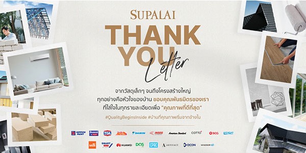 ล่าสุด ศุภาลัยได้แสดงความขอบคุณอย่างจริงใจผ่านจดหมายถึงพันธมิตรจำนวน 18 ราย ที่ร่วมมือกันสร้างสรรค์ผลิตภัณฑ์ที่เปี่ยมด้วยคุณภาพและใส่ใจสิ่งแวดล้อม ความร่วมมือครั้งนี้สะท้อนถึงความเชื่อร่วมกันว่า “คุณภาพที่ดี” ต้องเริ่มตั้งแต่ต้นทาง ทั้งในด้านวัสดุ กระบวนการ และจิตใจของผู้ร่วมสร้าง ไม่ใช่เพียงแค่ภายในองค์กร แต่รวมถึงเครือข่ายพันธมิตรที่เดินเคียงข้างกันมา ศุภาลัยเชื่อว่าการสร้างบ้านที่ดีนั้น ต้องอาศัยความร่วมแรงร่วมใจในทุกมิติ และพันธมิตรเหล่านี้คือส่วนสำคัญที่ช่วยเติมเต็มคำว่า “คุณภาพจากภายใน”