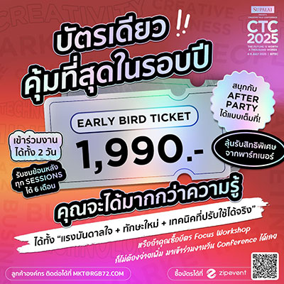 CREATIVE TALK Conference คืองานอัปเดตเทรนด์ที่คุณควรรู้ ซึ่งในปีนี้มา มาใน Theme ของ "THE FUTURE IS WORTH A THOUSAND WORDS" อนาคตไม่ใช่แค่เรื่องของวันพรุ่งนี้ แต่คือสิ่งที่เราเลือกทำในวันนี้ เพราะอนาคตมีหลากความหมาย หลายคำจำกัดความ มากด้วยวิธีการจะไปให้ถึง “คำถามจึงไม่ใช่อนาคตจะเป็นอย่างไร แต่คือคุณจะสร้างสรรค์อนาคตของคุณได้อย่างไร” #CTC2025 จึงเป็นพื้นที่ให้คุณมองเห็นอนาคตและโอกาสไปพร้อมกัน เพื่อให้เรามาร่วมกันออกแบบ "อนาคตที่มีคุณค่า ในแบบของเราเอง