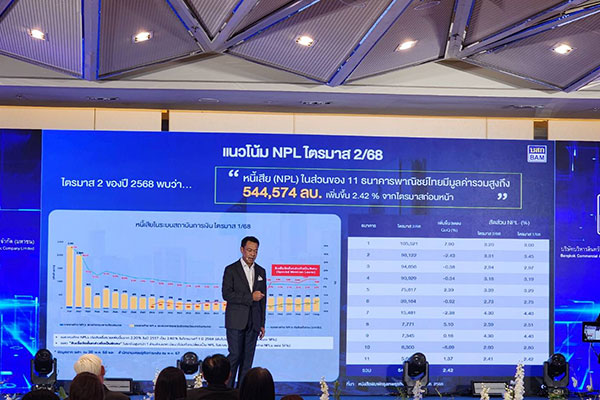 ดร.รักษ์ วรกิจโภคาทร ประธานเจ้าหน้าที่บริหาร บริษัทบริหารสินทรัพย์ กรุงเทพพาณิชย์ จำกัด (มหาชน) หรือ BAM กล่าวถึงผลการดำเนินงานครึ่งแรกปี 2568 ว่า โดยภาพรวมเป็นที่น่าพอใจ สามารถสร้างผลเรียกเก็บได้สูงถึง 10,154 ล้านบาท เมื่อเทียบกับช่วงเดียวกันของปีก่อนที่ทำได้ 7,493 ล้านบาท หรือโตถึง 36% ขณะที่ไตรมาสที่ 2 ของปีนี้ มีผลเรียกเก็บ 6,962 ล้านบาท เพิ่มขึ้นจากไตรมาสแรก ที่มีผลเรียกเก็บ 3,192 ล้านบาท หรือเพิ่มขึ้นมากถึง 118% และมีกำไร 1,511 ล้านบาท หรือเพิ่มขึ้น 72% จากช่วงเดียวกันของปีก่อนที่มีกำไรสุทธิอยู่ที่ 880 ล้านบาท ซึ่งผลงานทางด้าน NPL ยังใช้แนวทางที่ให้โอกาสลูกหนี้ในการได้หลักประกันซึ่งเป็นที่อยู่อาศัยหรือที่ทำกินกลับคืนไปด้วยเงื่อนไขที่ผ่อนปรน และมุ่งช่วยเหลือลูกหนี้ให้สามารถฟื้นฟูกิจการหรือสถานะทางการเงินของตน โดยปรับโครงสร้างหนี้และหาทางออกที่ดีที่สุดร่วมกัน ด้วยกระบวนการ Recycling Machine ซึ่งมีเป้าหมายในการเร่งสร้างโรงงานแก้หนี้ (TDR Factory) เพื่อฟื้นฟูให้ลูกหนี้กลับมามีสุขภาพทางการเงินที่ดีขึ้น ซึ่ง BAM สามารถสร้างรายได้จากการปรับโครงสร้างหนี้ NPL ลูกหนี้รายใหญ่รายหนึ่งได้ข้อยุติถึง 2,800 ล้านบาท