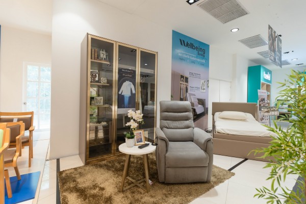 Well-being Living ถูกถ่ายทอดผ่านการออกแบบประสบการณ์การอยู่อาศัยที่คำนึงถึงรายละเอียด เล็ก ๆ ในชีวิตประจำวัน ตั้งแต่การนอน การหายใจ การเคลื่อนไหว ไปจนถึงความรู้สึกปลอดภัยภายในบ้าน โดยหลอมรวม 4 แกนสำคัญ ได้แก่ Sleep Well ที่มองคุณภาพการนอนเป็นรากฐานของสุขภาพและพลังชีวิต เพื่อให้การพักผ่อนไม่ใช่เพียงการนอนหลับ แต่เป็นช่วงเวลาสำคัญของการฟื้นฟูพลังชีวิต สร้างความสดชื่นทั้งร่างกายและจิตใจ พร้อมเริ่มต้นวันใหม่ได้อย่างมีคุณภาพ Pure Comfort ที่ให้ความสำคัญกับสภาพแวดล้อมภายในบ้านที่สะอาด ปลอดภัย และอ่อนโยนต่อร่างกาย โดยคัดสรรโซลูชัน อย่าง Smart Wardrobe Purifier ตู้เสื้อผ้าฟอกอากาศที่มาพร้อมระบบ AutoFlow PuriTech System, เครื่องฟอกอากาศ และระบบปรับอากาศที่มาพร้อมเทคโนโลยีการฟอกอากาศ ควบคู่ไปกับการเลือกใช้วัสดุที่ตอบโจทย์ อย่างผ้าหุ้มโซฟาแบบ Comfort Shield ที่มีคุณสมบัติพิเศษ คือ เป็นผ้ากันน้ำและแบคทีเรีย ช่วยป้องกันการเกิดเชื้อราและแบคทีเรีย ทำให้ง่ายต่อการทำความสะอาดและดูแลรักษาในชีวิตประจำวัน ,ไม้ที่ผ่านมาตรฐาน E1 และไม้ปลอดสารพิษ NAF (No Added Formaldehyde) ซึ่งช่วยลดการปล่อยสารฟอร์มาลดีไฮด์ ทำให้อากาศภายในบ้านสะอาด อ่อนโยนต่อระบบทางเดินหายใจ และส่งเสริมสุขภาวะที่ดีในระยะยาว Ergonomic Living ที่สะท้อนความเชื่อว่าบ้านที่ดีต้องอยู่แล้วสบาย ลดความเมื่อยล้า และรองรับวิถีชีวิตที่เปลี่ยนแปลงไป เราได้แสวงหานวัตกรรมที่ตอบโจทย์ในเรื่องสัดส่วนที่เหมาะสมกับสรีระมนุษย์ ความสามารถในการปรับระดับให้สอดคล้องกับผู้ใช้งานแต่ละบุคคล รวมถึงการรองรับกิจกรรมที่หลากหลาย ตั้งแต่การทำงาน พักผ่อน ไปจนถึงการใช้ชีวิตร่วมกันของสมาชิกในครอบครัวทั้งหมด และ Elder Care ที่นำแนวคิด Inclusive Design มาดูแลให้ทุกช่วงวัยสามารถใช้ชีวิตร่วมกันได้อย่างกลมกลืน Well-being Living จึงไม่ใช่เพียงแนวคิดด้านสุขภาพ แต่คือวิธีคิดใหม่ของการอยู่อาศัย ที่ทำให้บ้านสามารถดูแล ฟื้นฟู และโอบรับทุกช่วงชีวิตได้อย่างแท้จริง อาทิ เตียงปรับระดับ Power Lift Bed ที่ช่วยให้ลุกนั่งได้สะดวก ลดแรงกดทับและภาระในการเคลื่อนไหว รวมถึง Power Lift Chair และ Recliner ที่ช่วยพยุงการลุกนั่ง รองรับสรีระอย่างเหมาะสม และเพิ่มความสบายในการพักผ่อนในชีวิตประจำวัน