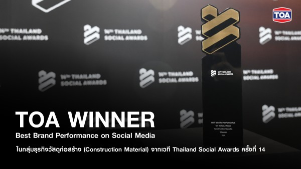 บริษัท ทีโอเอ เพ้นท์ (ประเทศไทย) จำกัด (มหาชน) หรือ TOA ผู้นำอุตสาหกรรมสีอันดับ 1 เคมีภัณฑ์ก่อสร้าง และวัสดุตกแต่งพื้นผิวครบวงจรของไทย ประกาศความสำเร็จบนโลกดิจิทัลอย่างยิ่งใหญ่ คว้ารางวัลชนะเลิศอันดับหนึ่ง “Best Brand Performance on Social Media” ในกลุ่มธุรกิจวัสดุก่อสร้าง (Construction Material) จากงานประกาศรางวัลโซเชียลที่ใหญ่ที่สุดในประเทศไทย ‘Thailand Social Awards ครั้งที่ 14’ ตอกย้ำกลยุทธ์ Content Strategy ที่ครองใจผู้บริโภคยุคใหม่ ในโอกาสนี้ นายนพคุณ ปัญญาเสริมสุข Head of Marketing บริษัท ทีโอเอ เพ้นท์ (ประเทศไทย) จำกัด (มหาชน) เป็นตัวแทนขึ้นรับรางวัล โดยมี นายกล้า ตั้งสุวรรณ ประธานเจ้าหน้าที่บริหาร บริษัท ไวซ์ไซท์ (ประเทศไทย) จำกัด ร่วมแสดงความยินดี ณ ทรูไอคอน ฮอลล์ ชั้น 7 ไอคอนสยาม