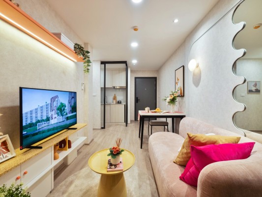 ส่วนรูปแบบห้องชุดมีให้เลือก 4 แบบ ประกอบด้วย แบบสตูดิโอ ขนาดพื้นที่ใช้สอยเริ่มต้น 23.75 ตร.ม. แบบ1 ห้องนอน พื้นที่ใช้สอย 24.48 – 29.86 ตร.ม. แบบ 1 ห้องนอนพลัส พื้นที่ใช้สอย 35.83 – 36.84 ตร.ม. และ แบบ 2 ห้องนอน พื้นที่ใช้สอย 43.86 – 44.14 ตร.ม. ตกแต่งแบบ Fully Furnished พร้อมม่านและซีลขอบยางบริเวณประตู ในราคาเริ่มต้นเพียง 1.79 ล้านบาท* หรือเฉลี่ยทั้งโครงการประมาณ 73,000 บาทต่อตารางเมตร โดยจะเปิดพรีเซลครั้งแรกในวันที่ 7-8 มีนาคม 2569 นี้ พร้อมโปรโมชั่นห้องราคาพิเศษ 1.29 ล้านบาท* และโปรโมชั่นทุกชั้น ราคาเดียว 1.69 ล้านบาท* จัดเต็มลุ้นรับของรางวัลในงาน รวมมูลค่ากว่า 1,000,000 บาท*