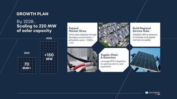 สำหรับบริษัท ไอออน เอนเนอร์ยี่ คอร์ปอเรชั่น จำกัด หรือ ION Energy เป็นผู้ให้บริการโซลูชันพลังงานแสงอาทิตย์แบบครบวงจร และเป็นผู้ต่อยอดโซลูชันพลังงานแสงอาทิตย์แบบครบวงจรให้ตอบโจทย์ทั้งภาคครัวเรือนและอสังหาริมทรัพย์ มีวิสัยทัศน์ผลักดันพลังงานสะอาดให้เข้าถึงครัวเรือนไทยอย่างเป็นรูปธรรมและยั่งยืน โดยผสานเทคโนโลยีโซลาร์ อินเวอร์เตอร์ แบตเตอรี่ และระบบบริหารพลังงานอัจฉริยะไว้ในแพลตฟอร์มเดียว ทำให้ผู้ใช้งานสามารถติดตามผลผลิตพลังงานได้แบบเรียลไทม์ ลดค่าไฟและเสริมความปลอดภัยของระบบในทุกขั้นตอน มีประสบการณ์การติดตั้งให้แก่ที่อยู่อาศัยของผู้พัฒนาอสังหาริมทรัพย์ชั้นนำ รวมถึงบ้านของผู้บริโภคทั่วไป รวมแล้วกว่า 6,500 หลังทั่วประเทศ